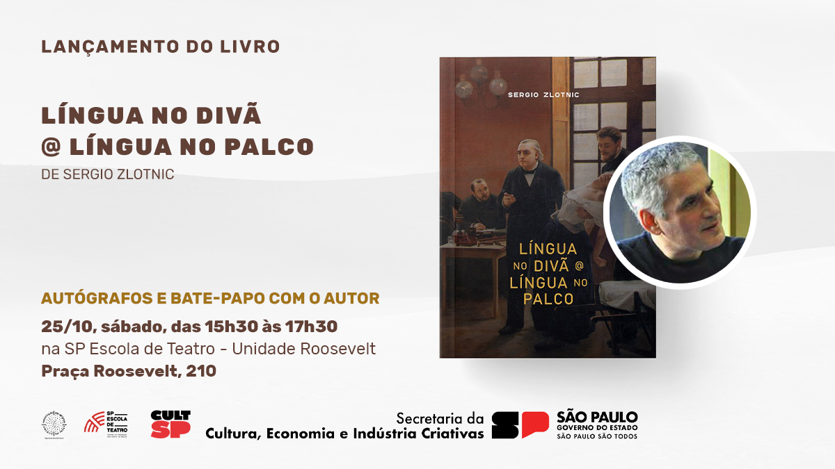Acontece nesse sábado (25) na unidade Roosevelt da SP Escola de Teatro – Centro de Formação das Artes do Palco o lançamento do livro “Língua no Divã @ Língua no Palco”, de Sergio Zlotnic.