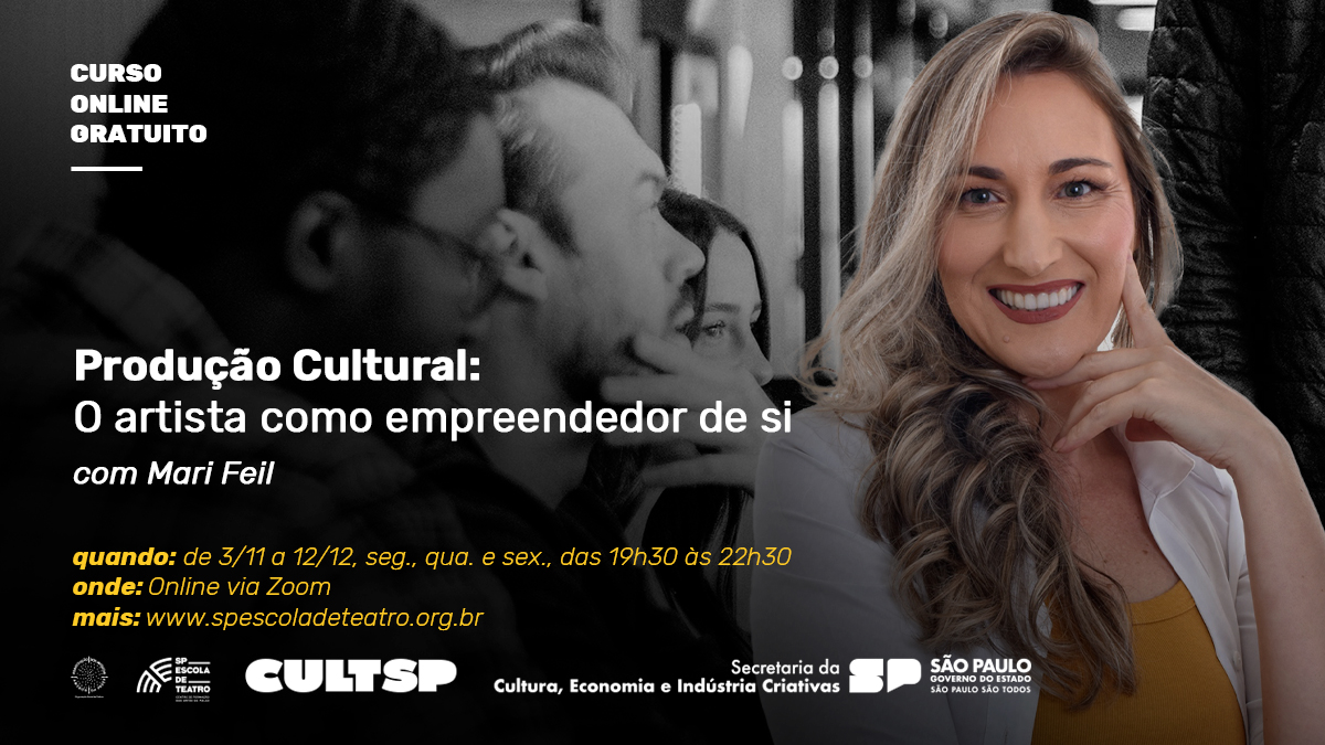 Estão abertas até 29 de outubro as inscrições para o curso gratuito de extensão “Produção Cultural: O artista como empreendedor de si”, ministrado por Mari Feil.