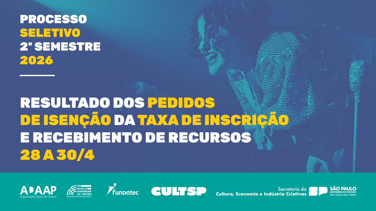 SP Escola Superior de Teatro – Faculdade das Artes do Palco e a Fundatec divulgaram o Edital com o resultado preliminar dos pedidos de isenção da taxa de inscrição do Processo Seletivo 2026/2º semestre.