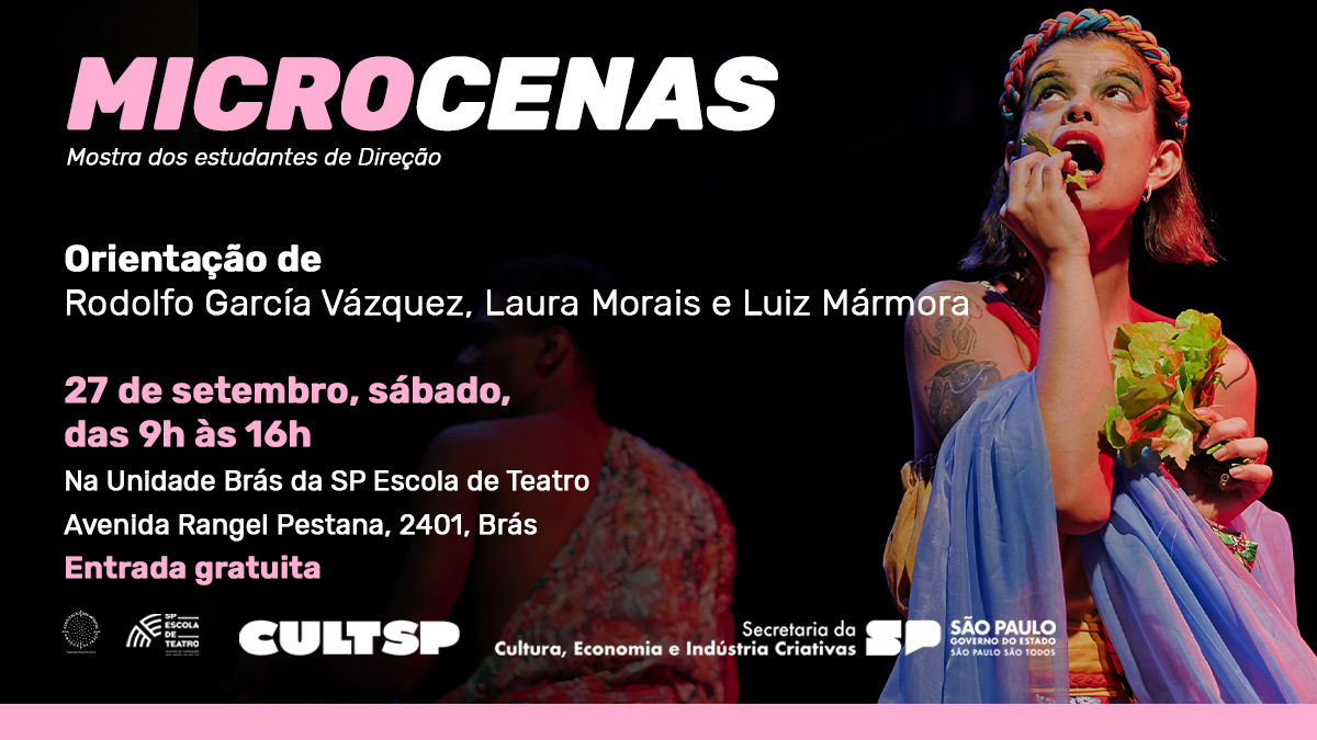 Acontece neste sábado (27) na unidade Brás da SP Escola de Teatro – Centro de Formação das Artes do Palco, das 9h às 16h, o primeiro dia da Mostra de Microcenas do segundo semestre de 2025.