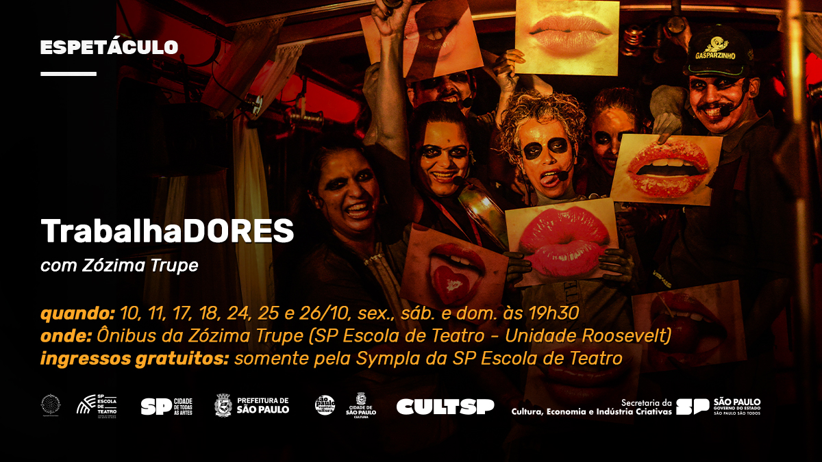 Fica em cartaz de 10 a 26 de outubro na unidade Roosevelt da SP Escola de Teatro – Centro de Formação das Artes do Palco o espetáculo “TrabalhaDORES”, da Zózima Trupe.