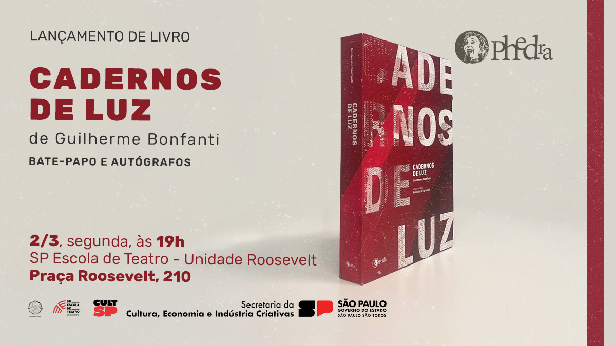 Guilherme Bonfanti lança Cadernos de Luz na SP Escola de Teatro em 2 de março