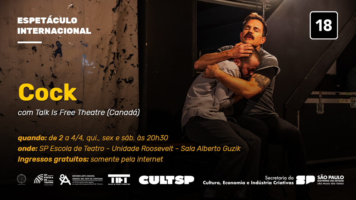 O Talk Is Free Theatre (TIFT), do Canadá, apresenta sua peça “Cock” de 2 a 4 de abril na SP Escola de Teatro – Centro de Formação das Artes do Palco.